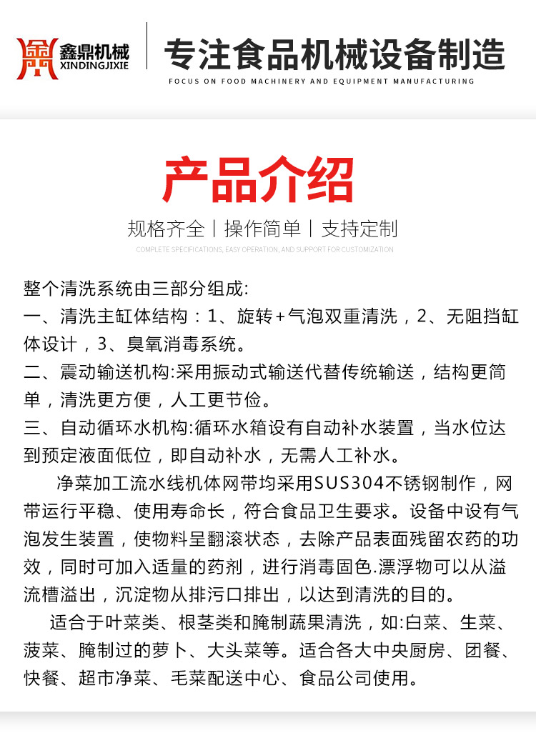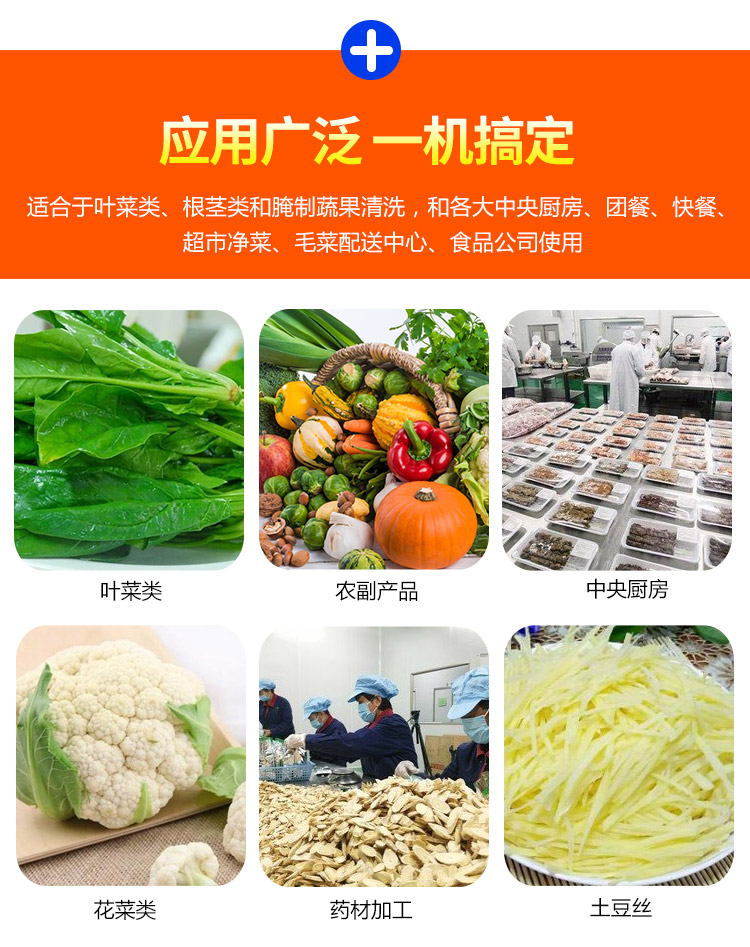 适用范围广:适用于蔬菜、水果、水产品、肉类、机械设备、工业器具等多种物料的清洗,满足不同行业的需求。
