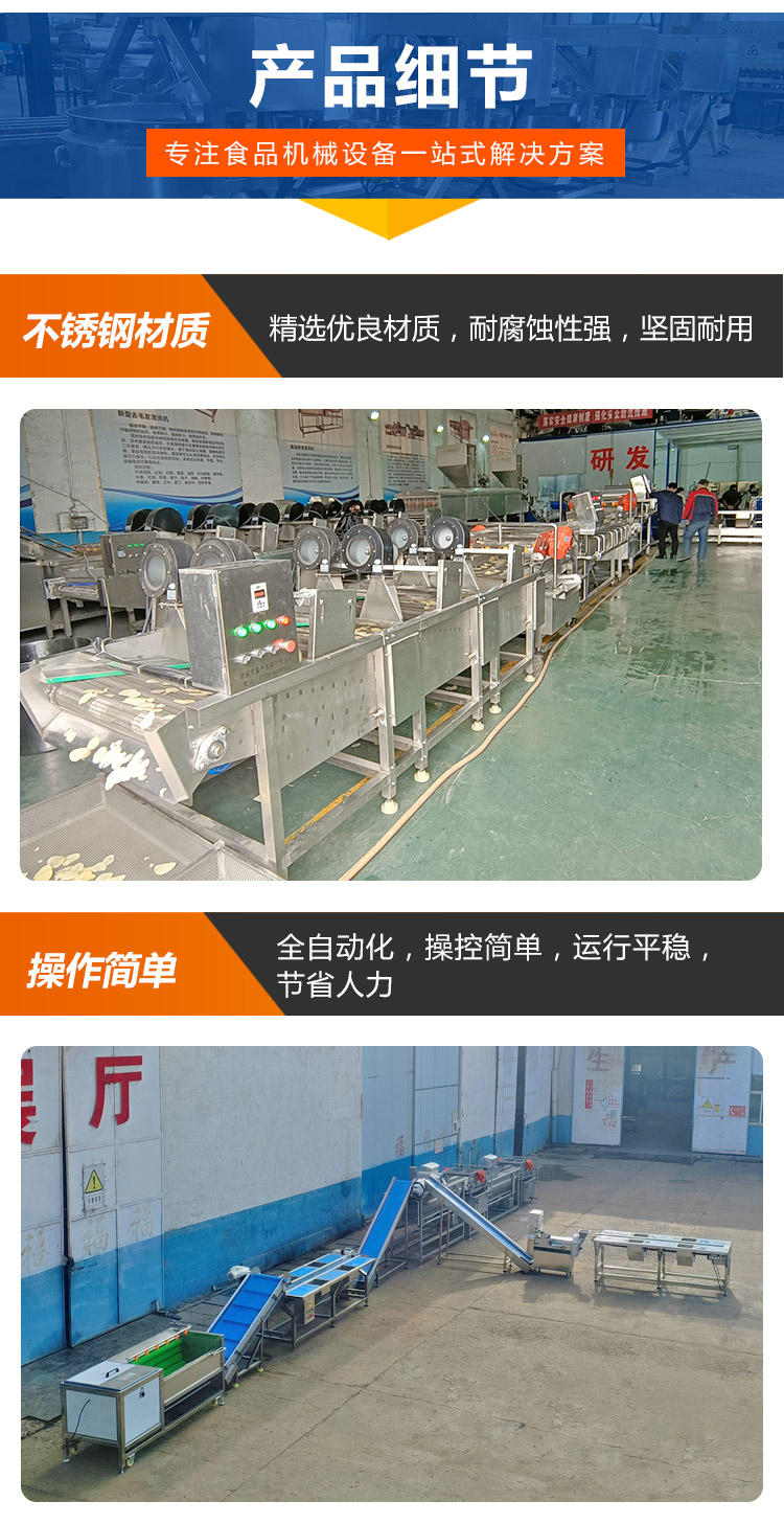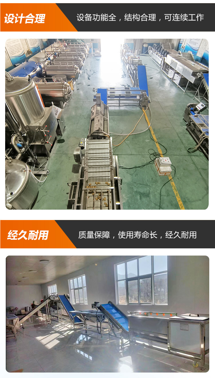 功能多样:可根据用户需求定制不同大小与功能的清洗机,并可搭配切割、挑拣、输送、风干等设备使用,形成完整的加工流水线。